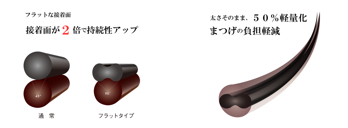 従来のマツエクとは違い軽くて長持ちするフラットラッシュ!